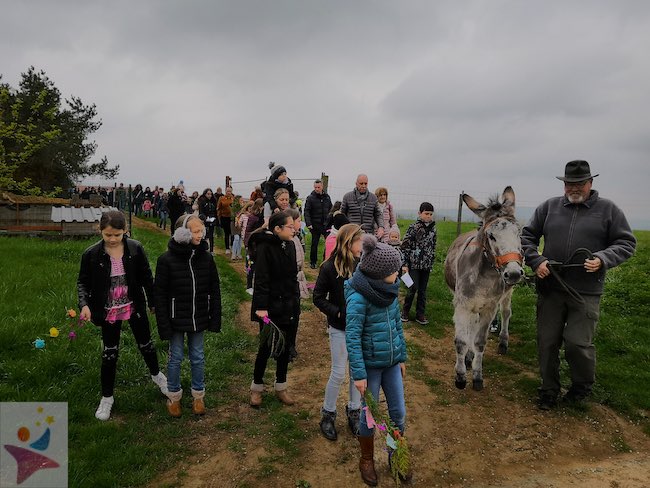 A l’occasion du dimanche des Rameux, la communauté de paroisses de la Zorn a organisé une grande fête de la solidarité à Saessolsheim le dimanche 14 avril 2019. Comme toujours l’âne Toto était présent !